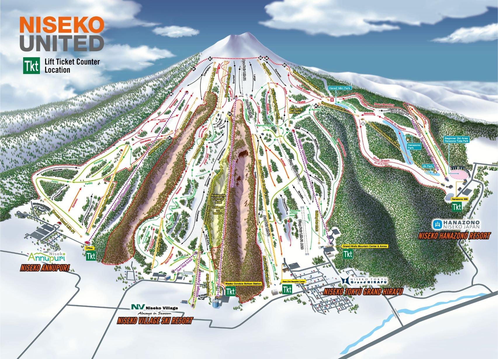 니세코 안누프리산에는 니세코 유나이티드라고 불리는 4개의 거다란 스키장이 있습니다.